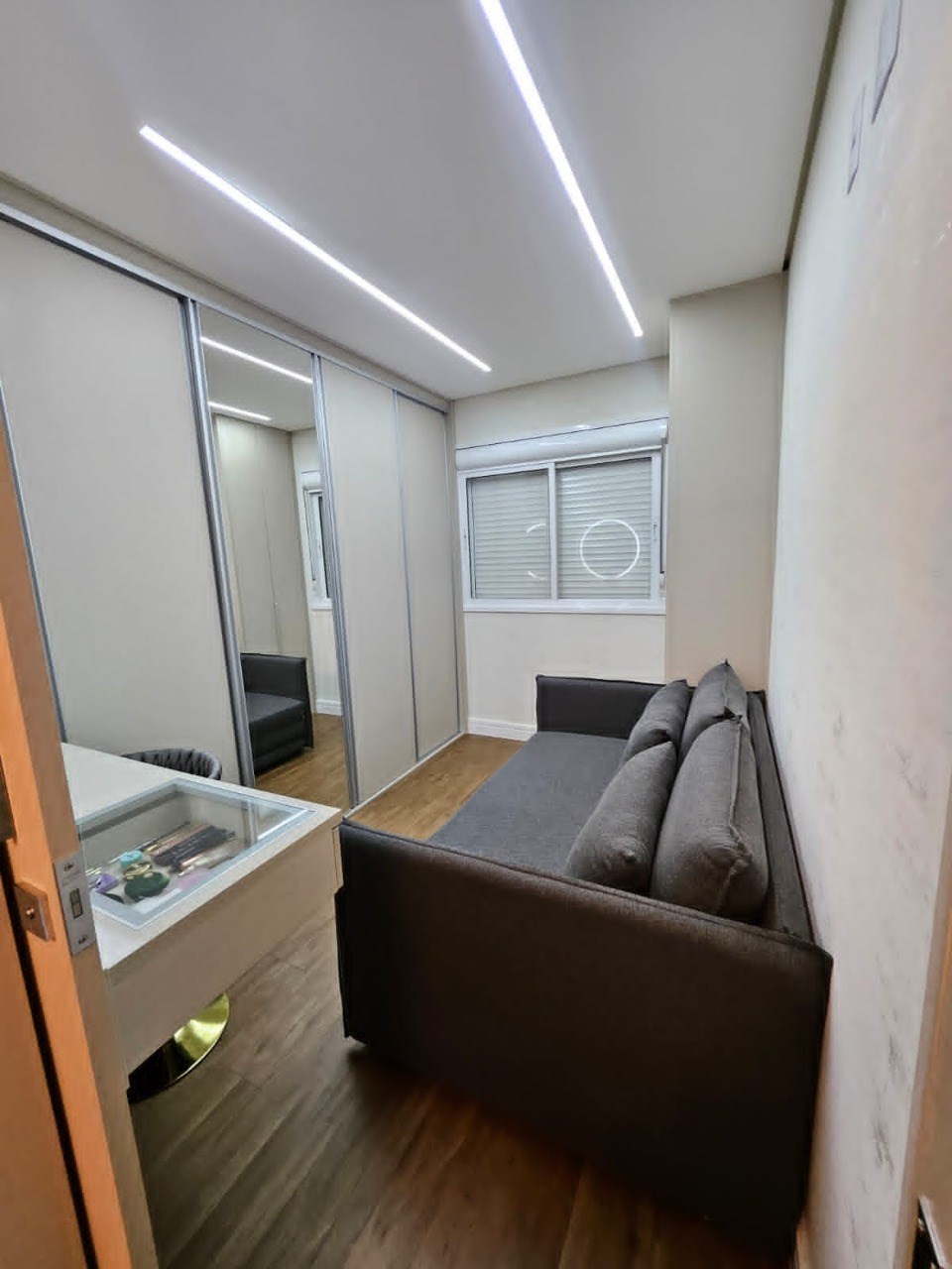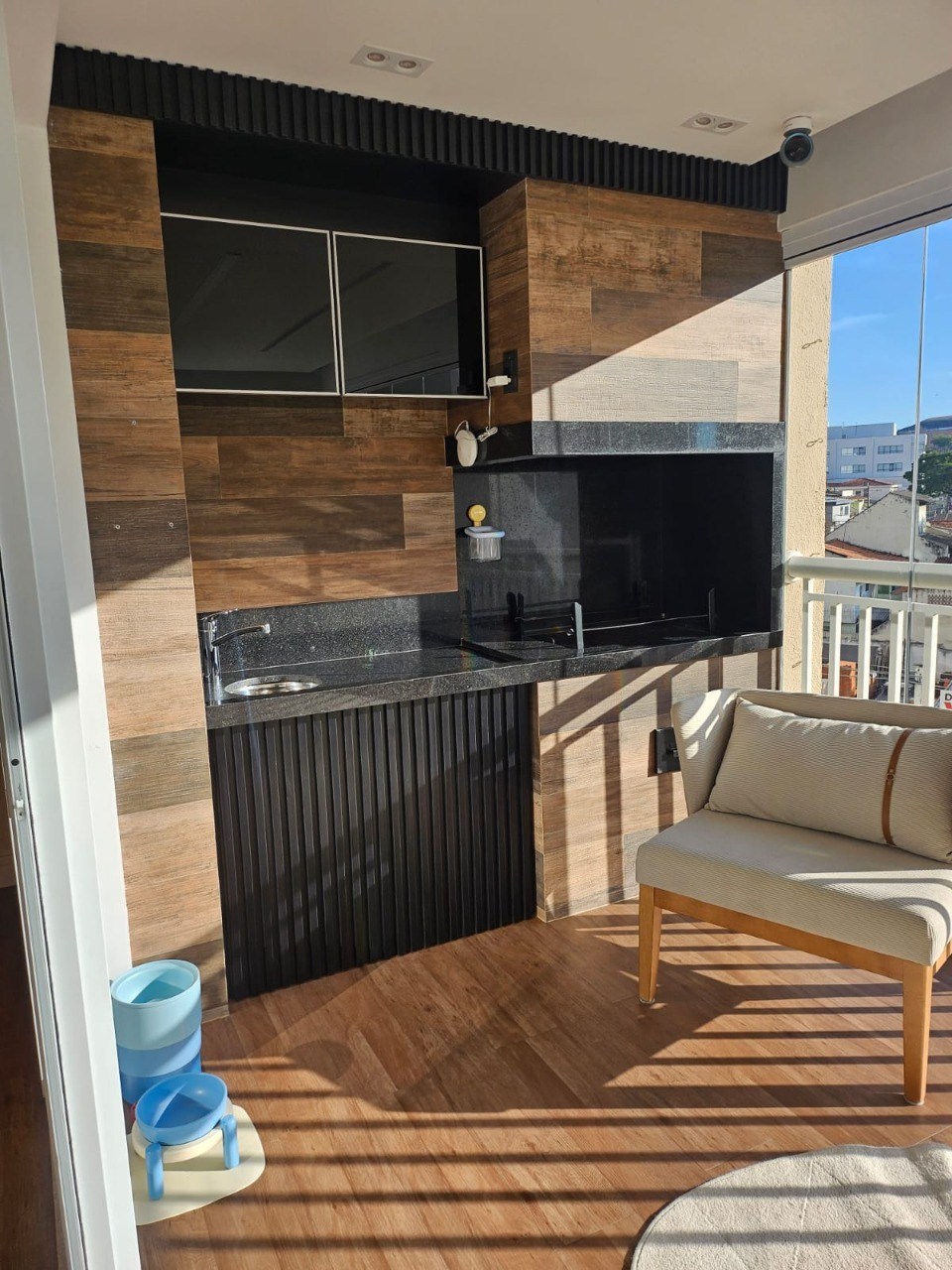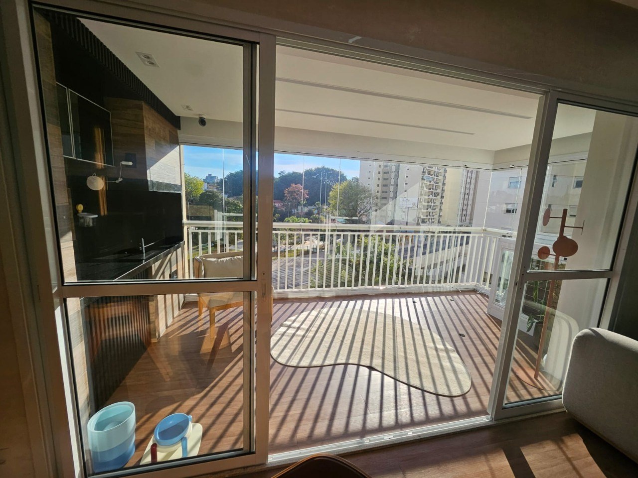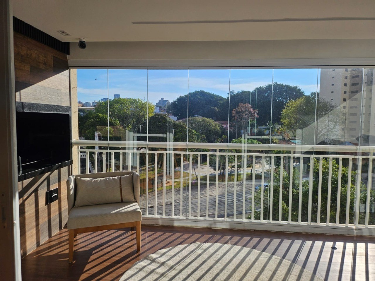 Varanda com fechamento em vidro.