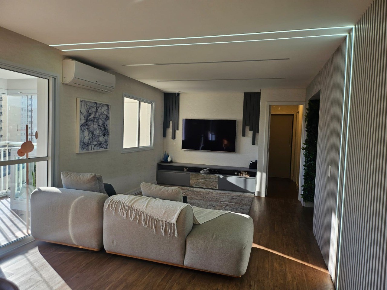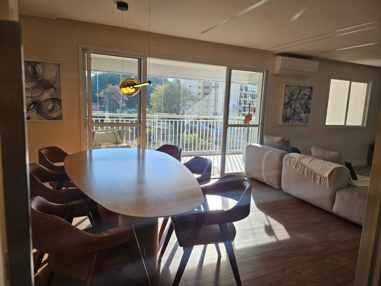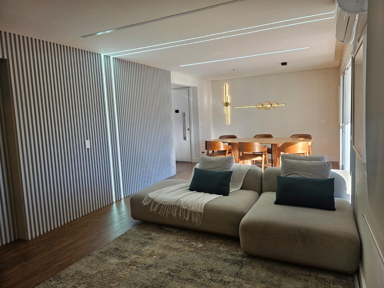 Sala ampla em dois ambientes.