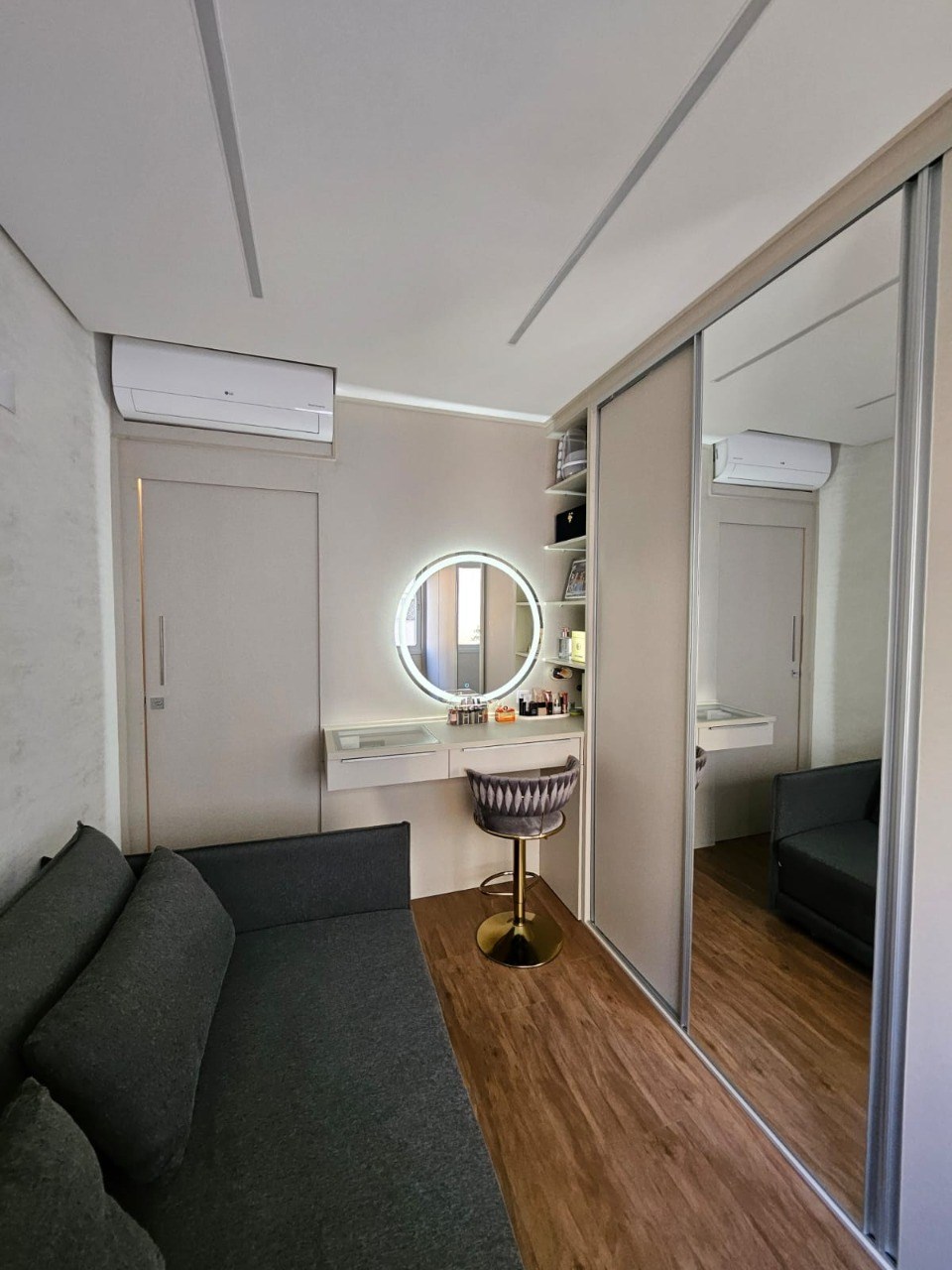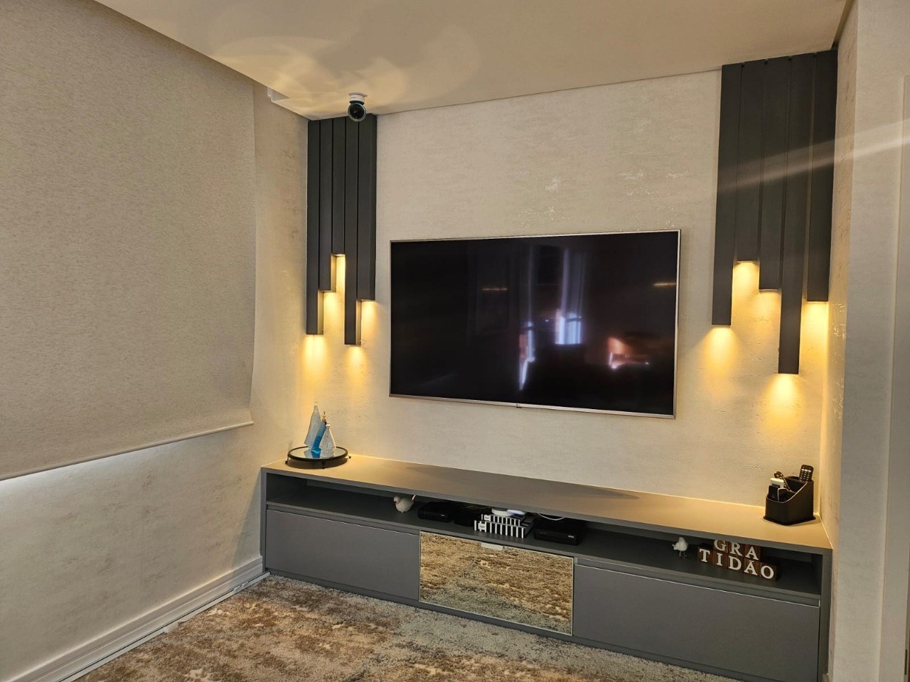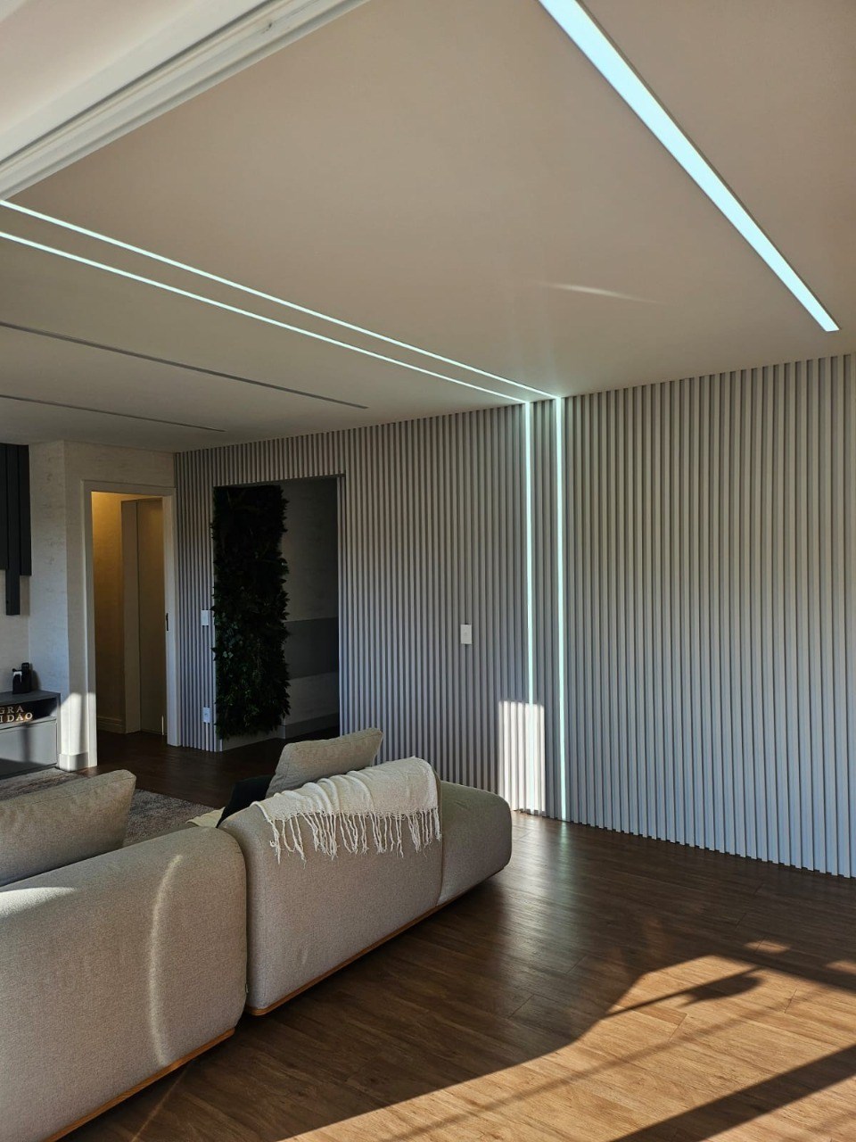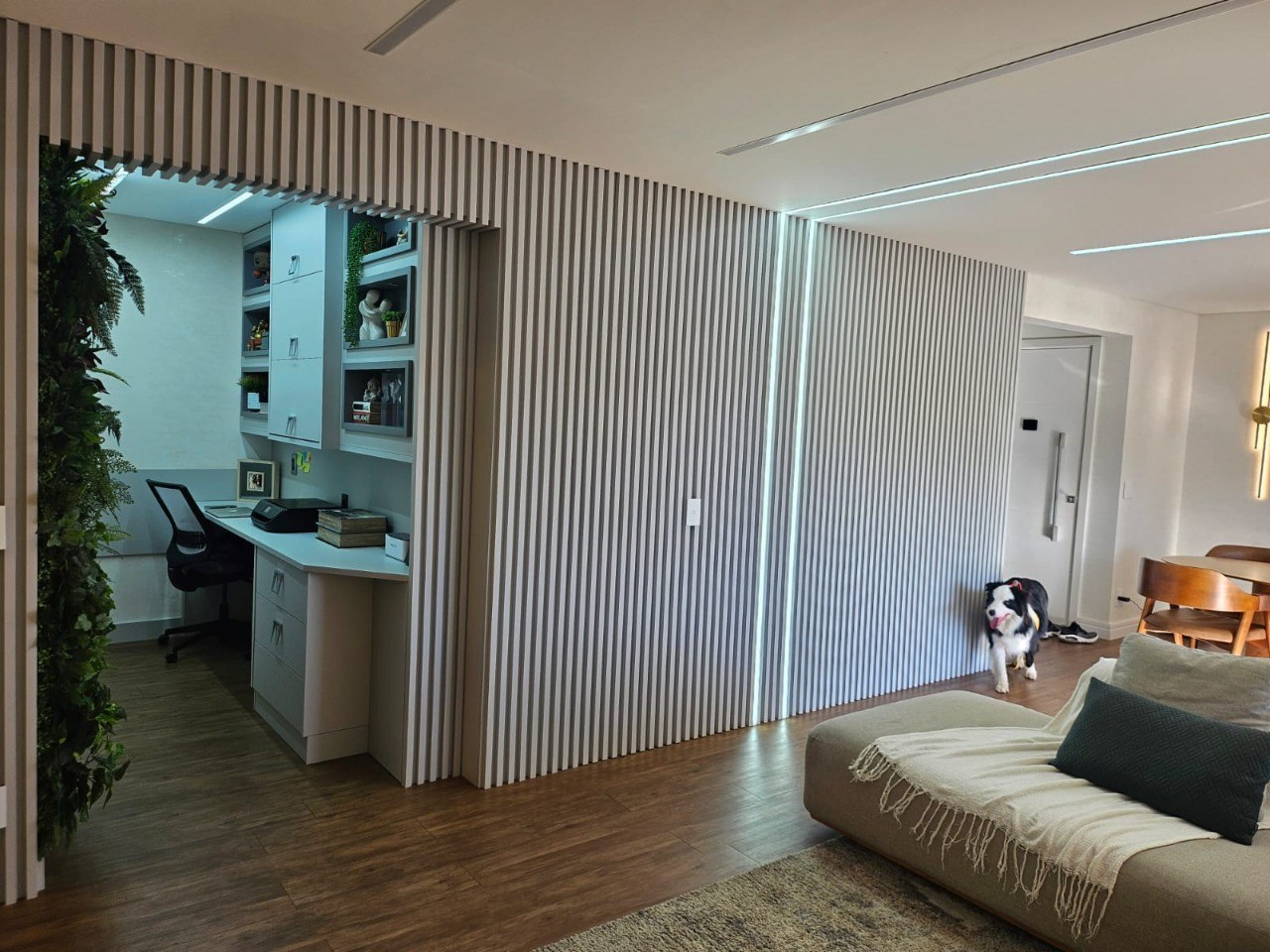Sala ampla em dois ambientes.