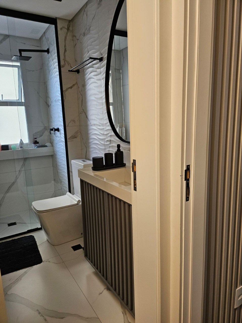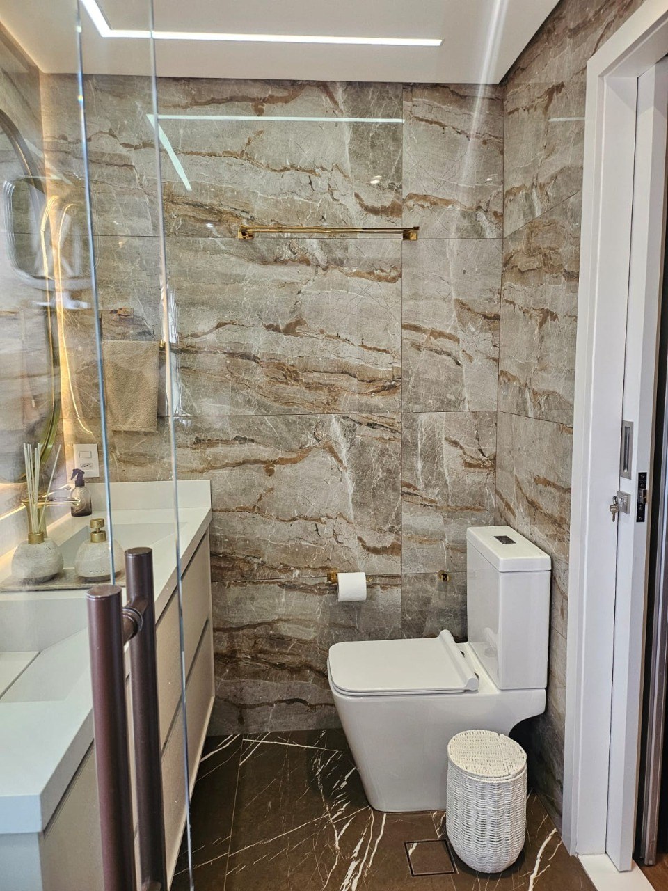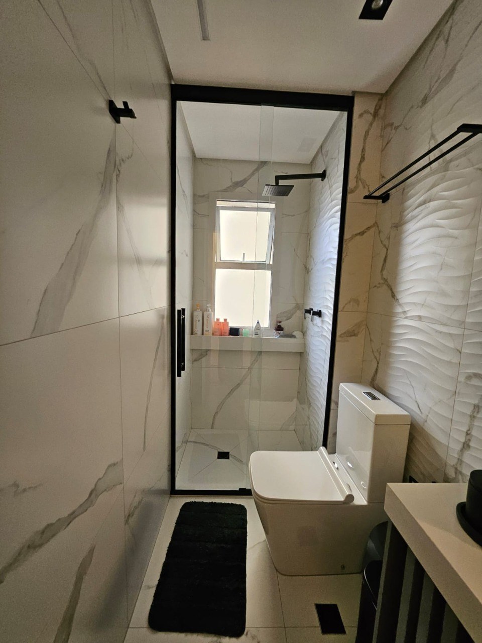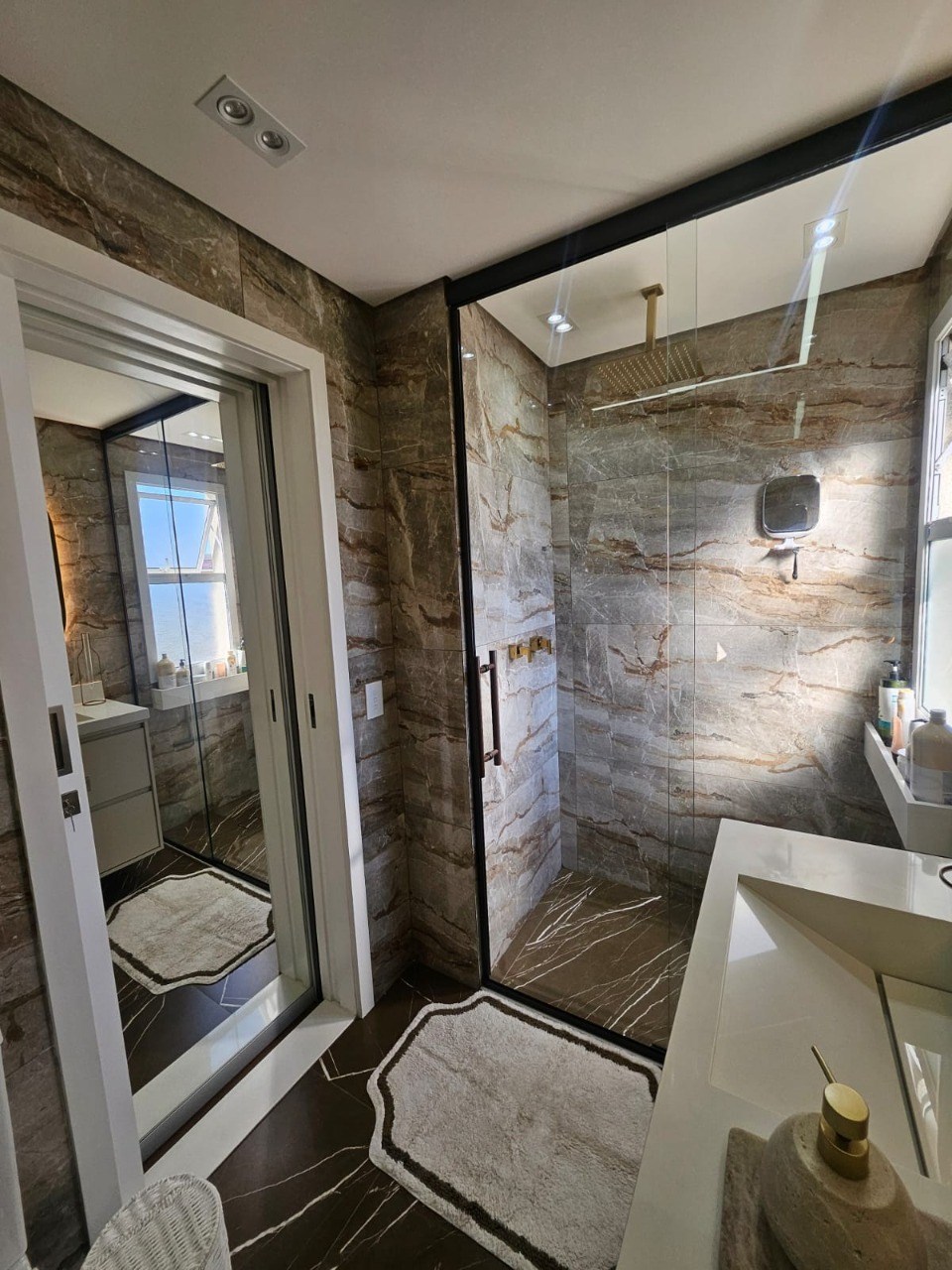 Banheiros com box em vidro.