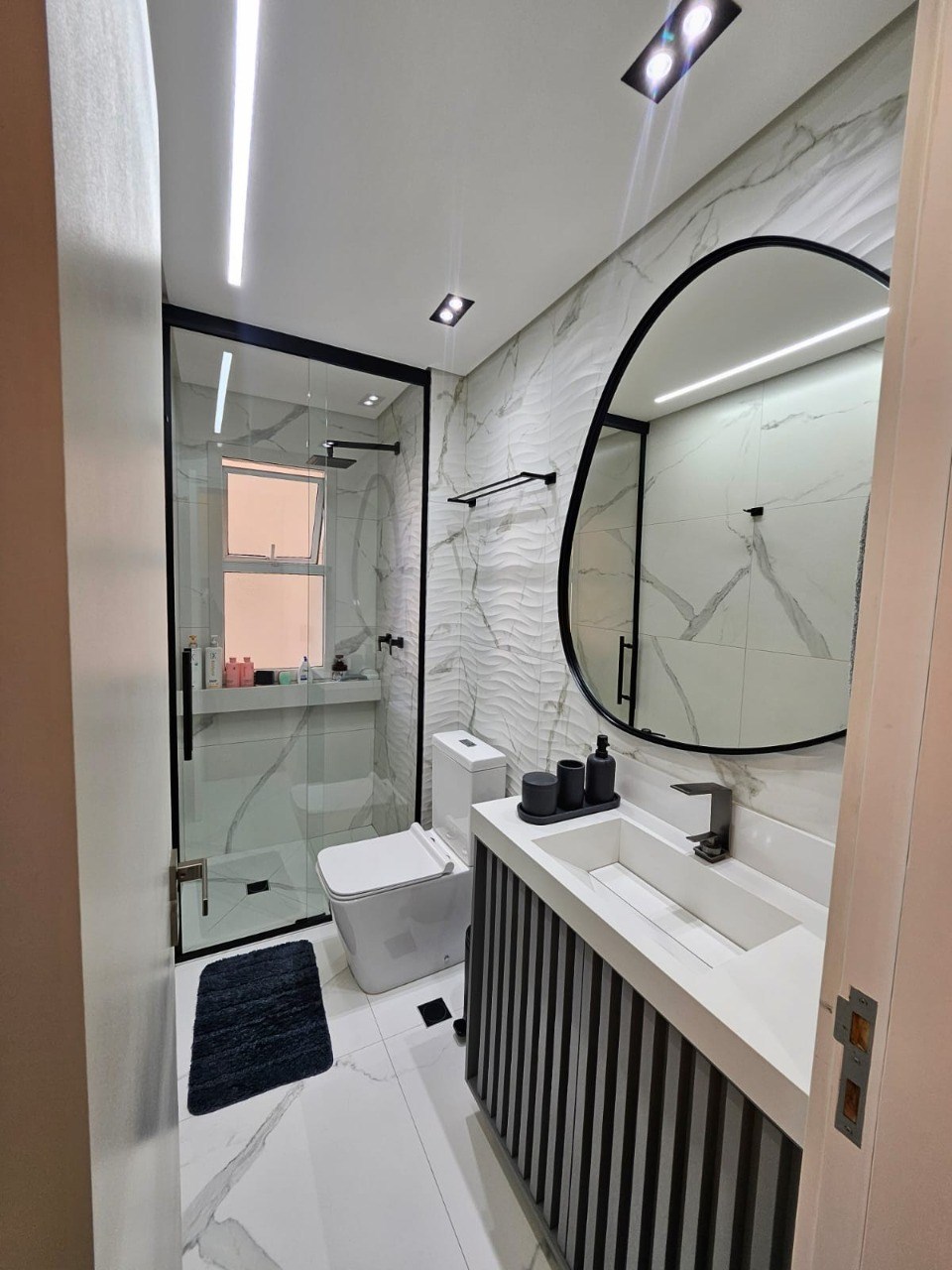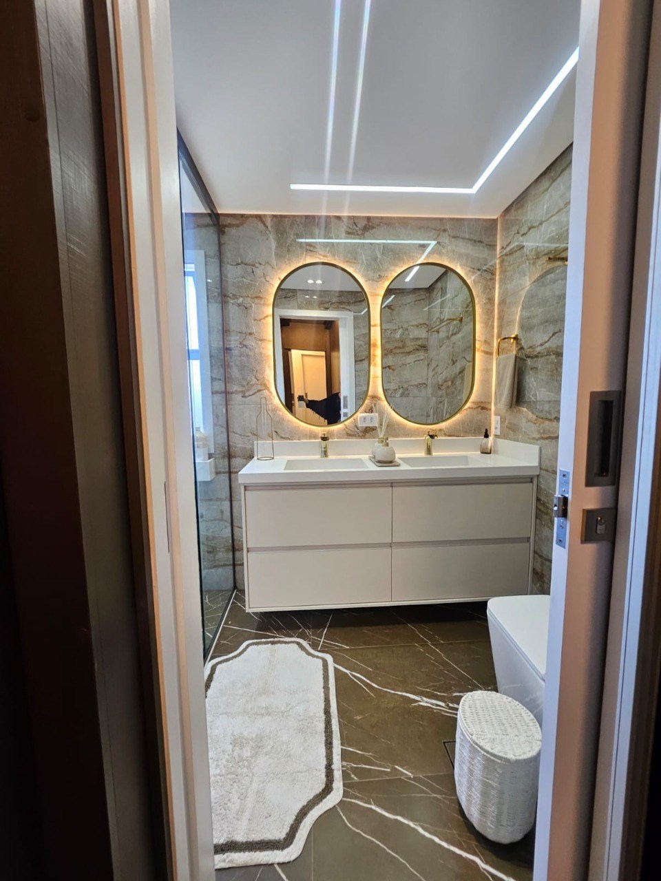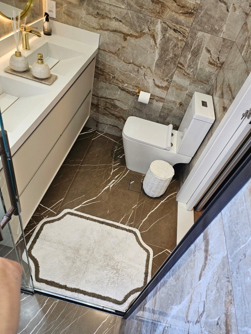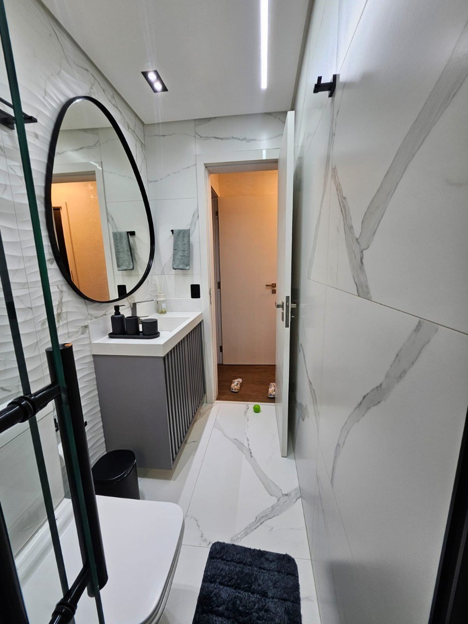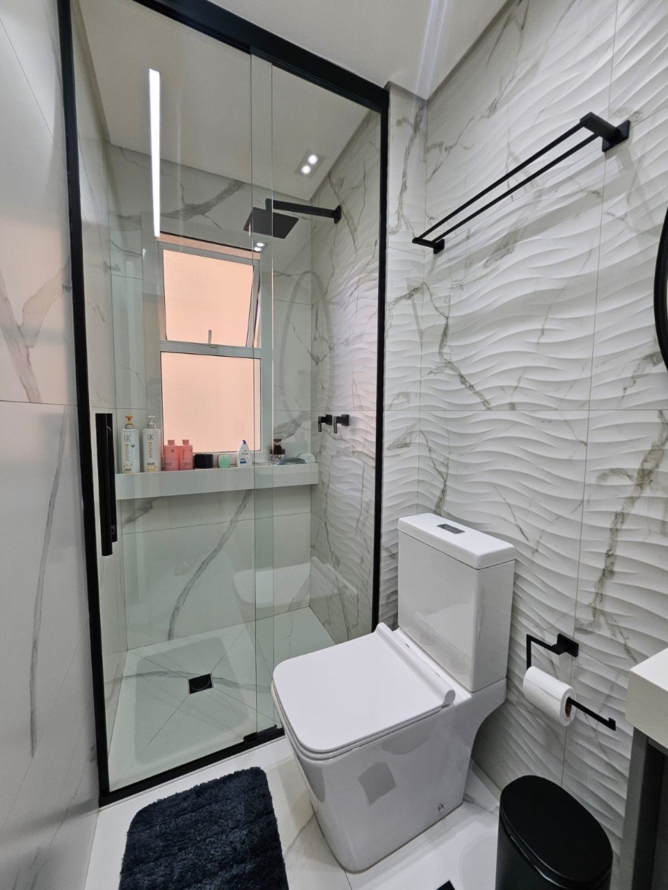 Banheiros com box em vidro.