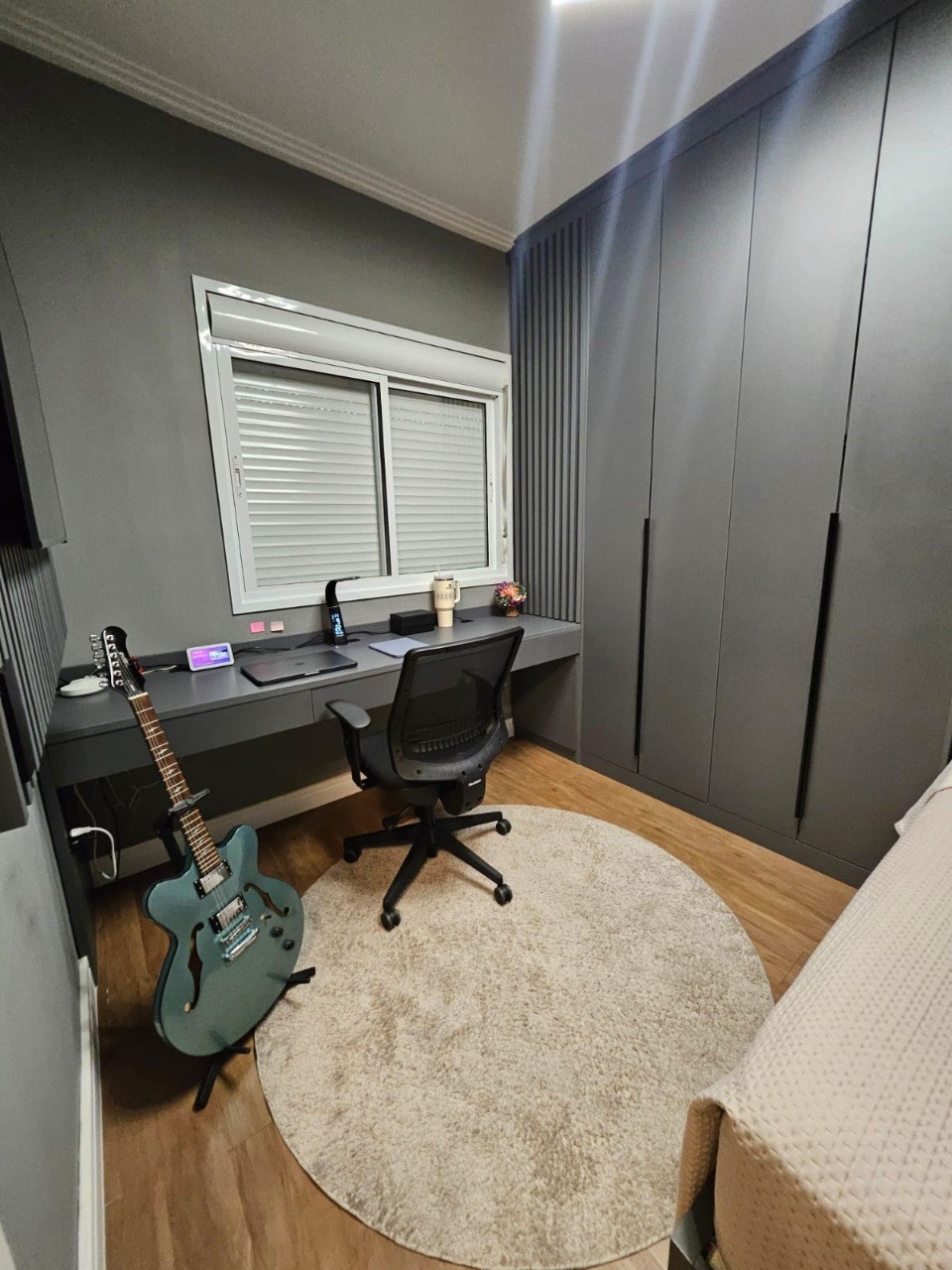 O imóvel possui 3 quartos, sendo 1 suíte, 3 banheiros e 2 vagas de garagem.
