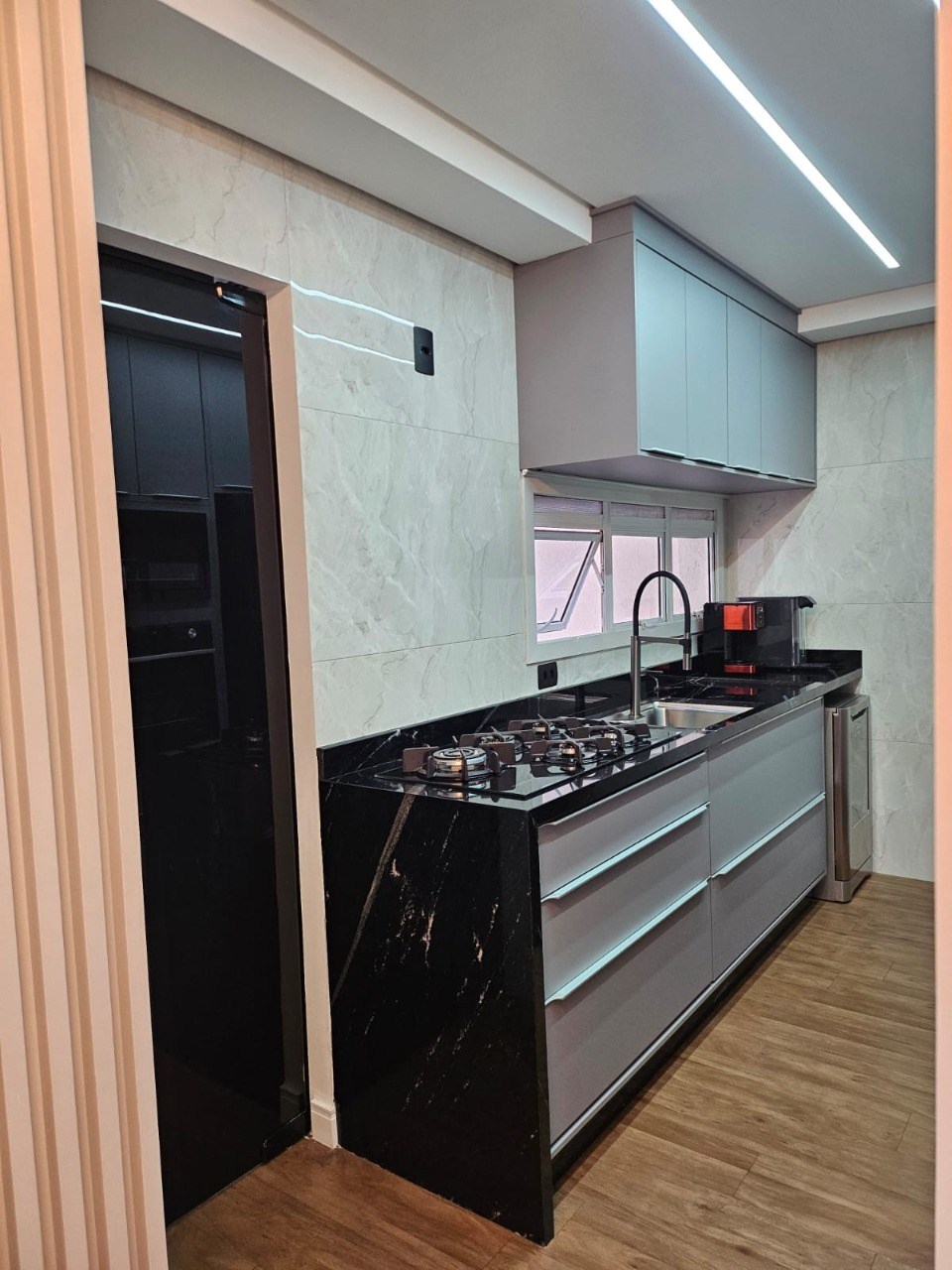 Cozinha com armários planejados.