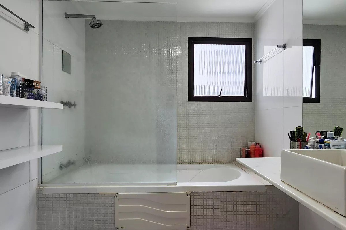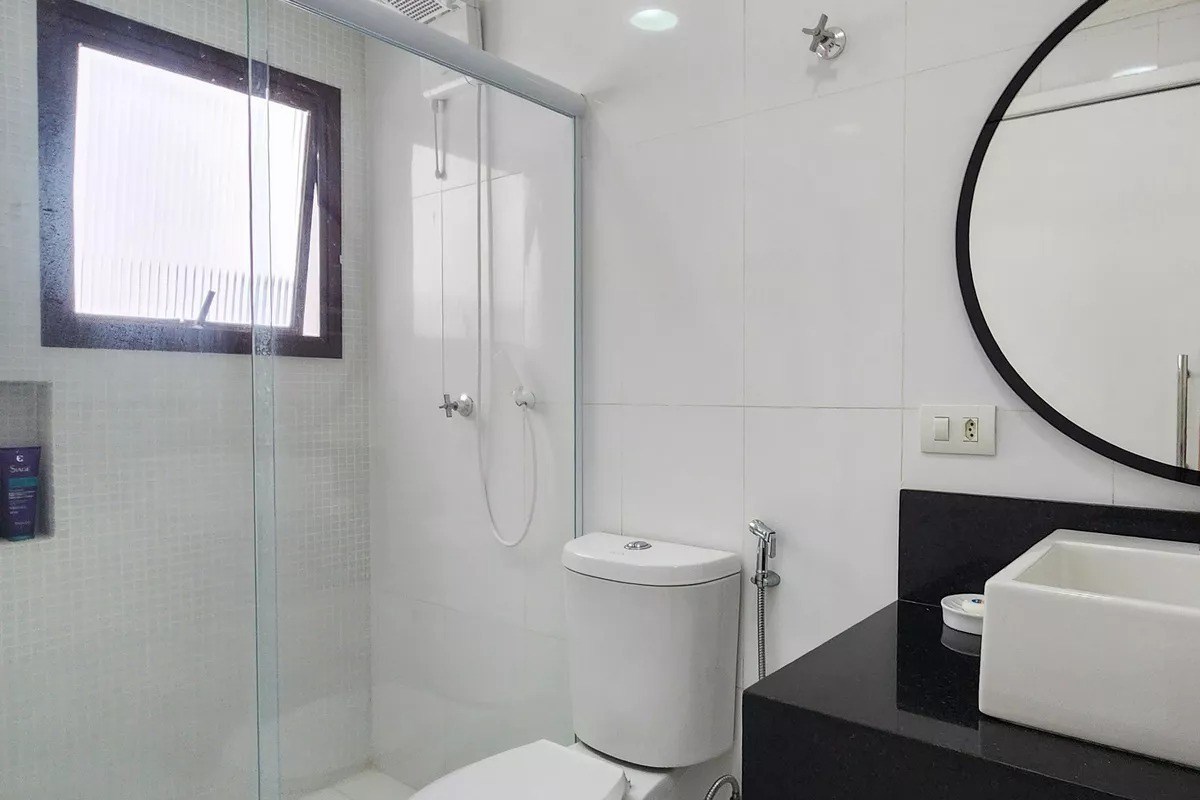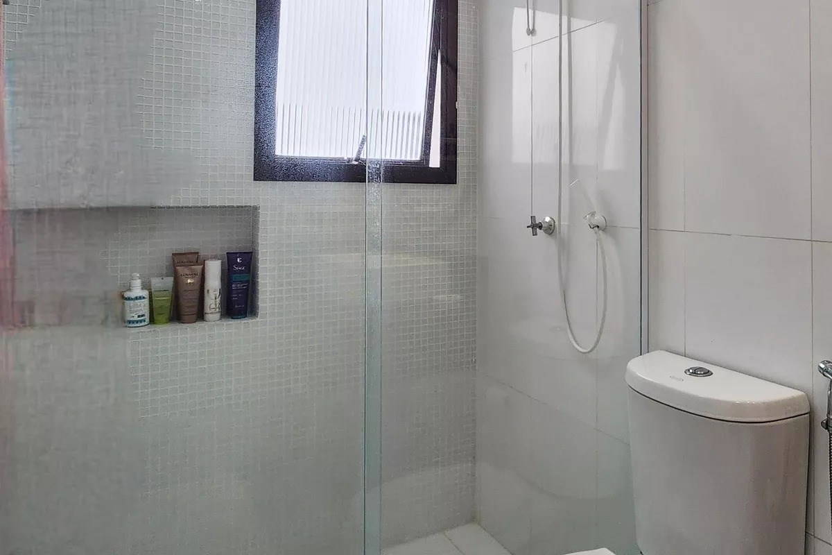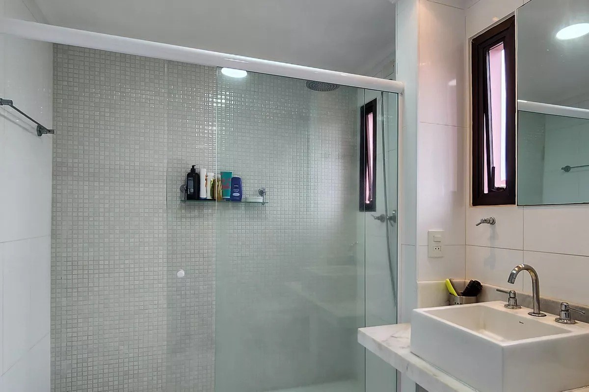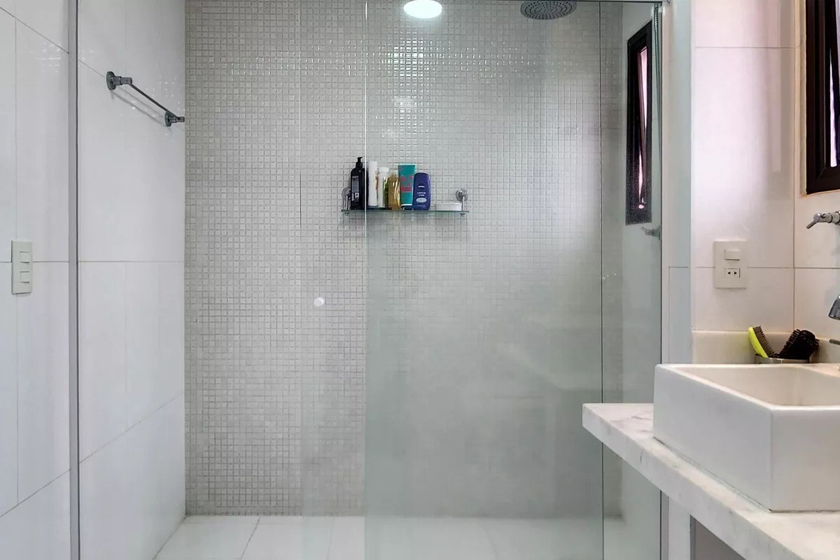 Banheiros com box em vidro.