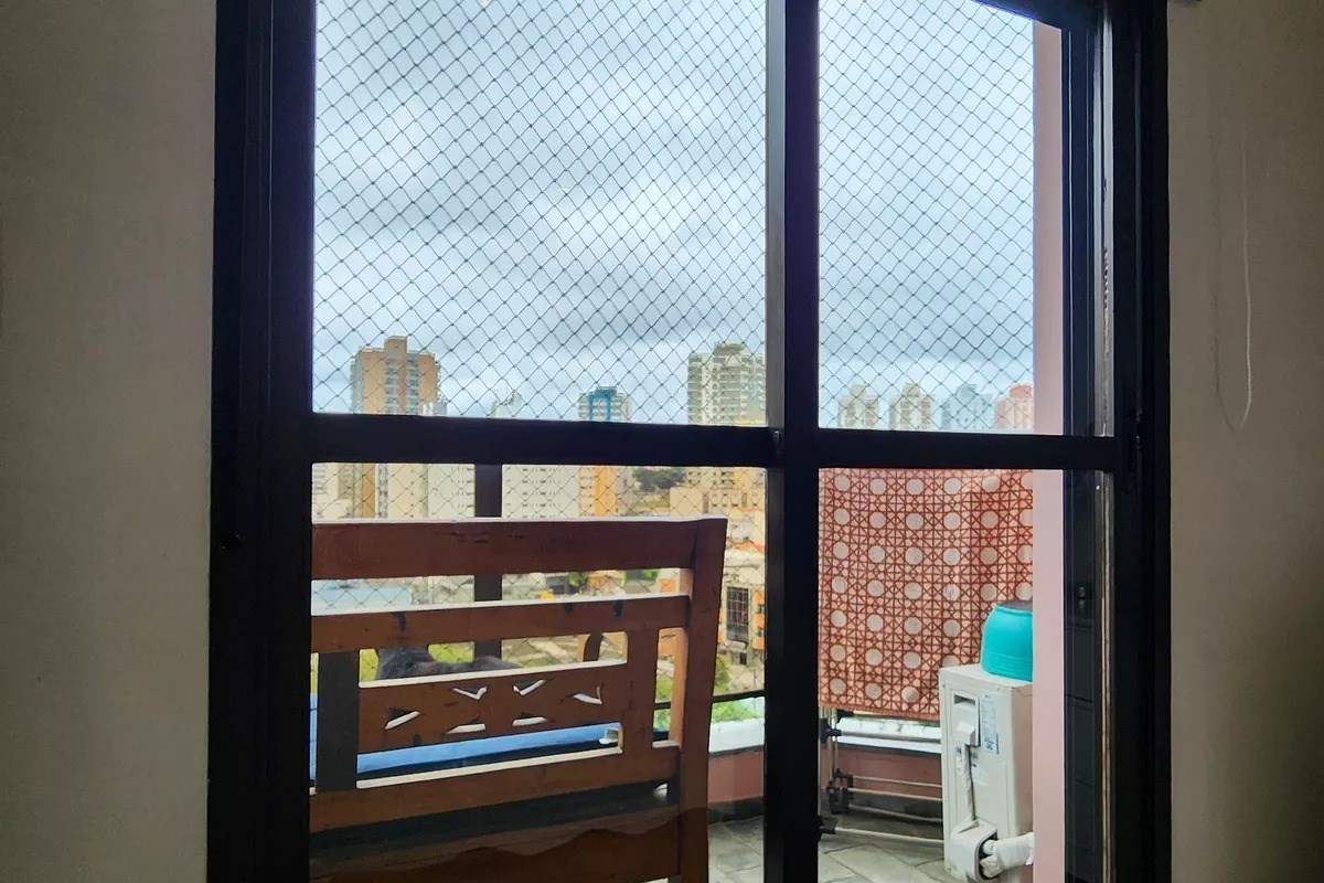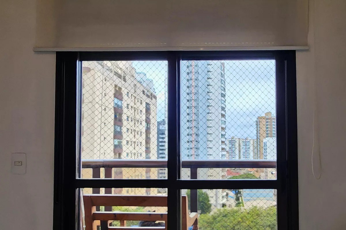 Varanda com telas de proteção.