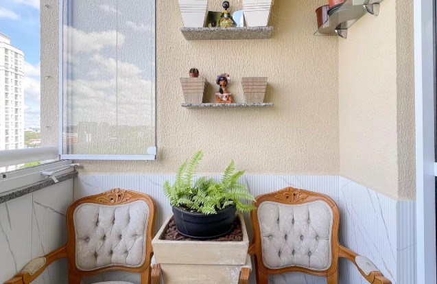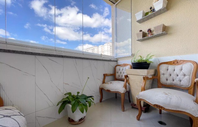 Varanda com fechamento em vidro.