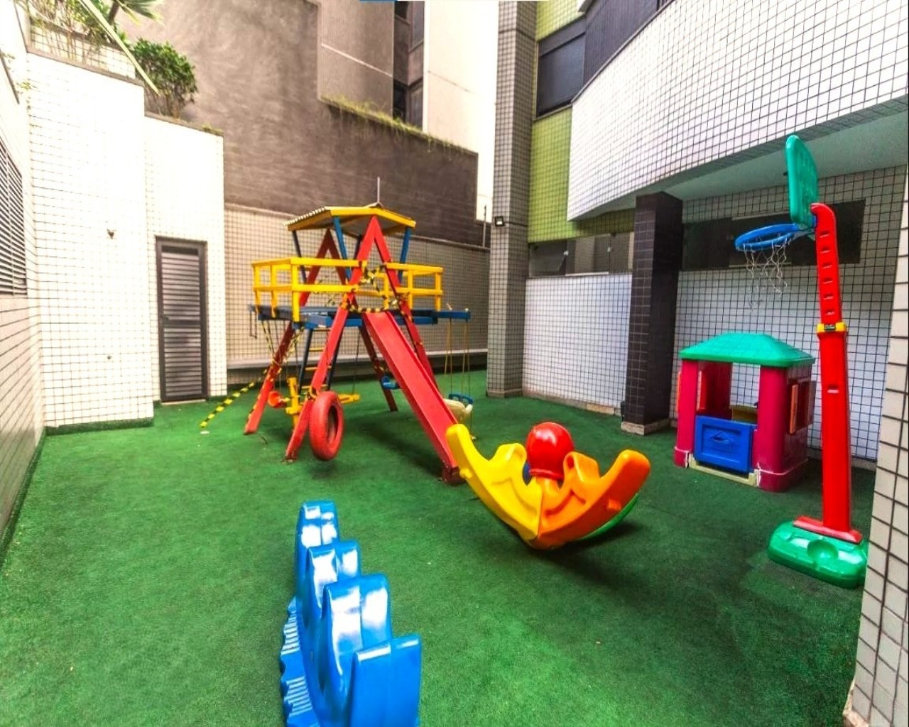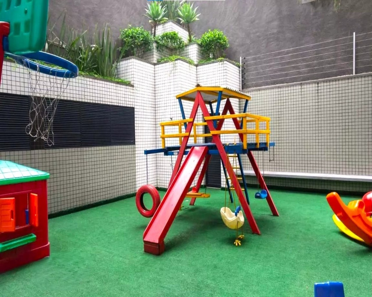 Varanda com telas de proteção.