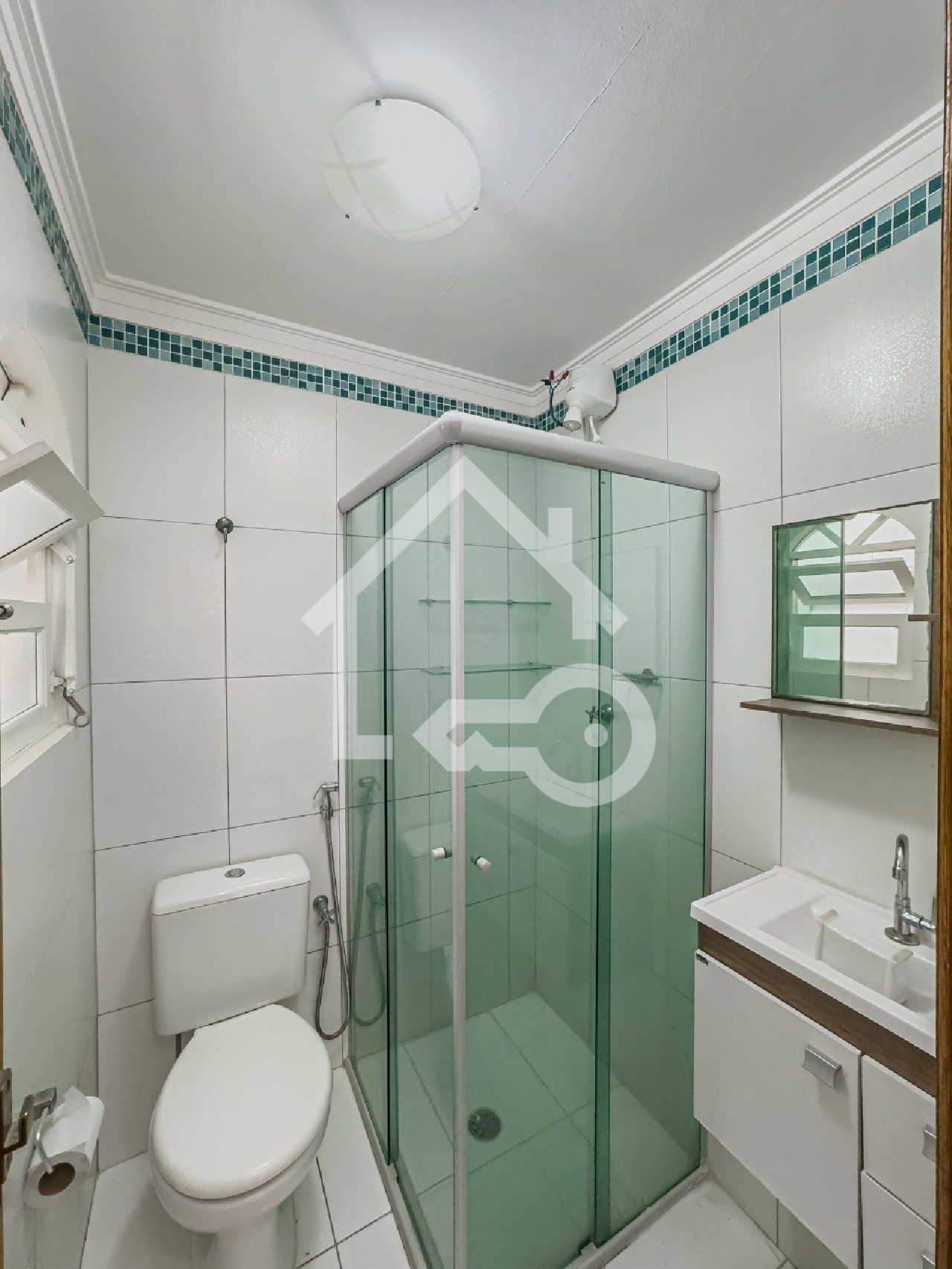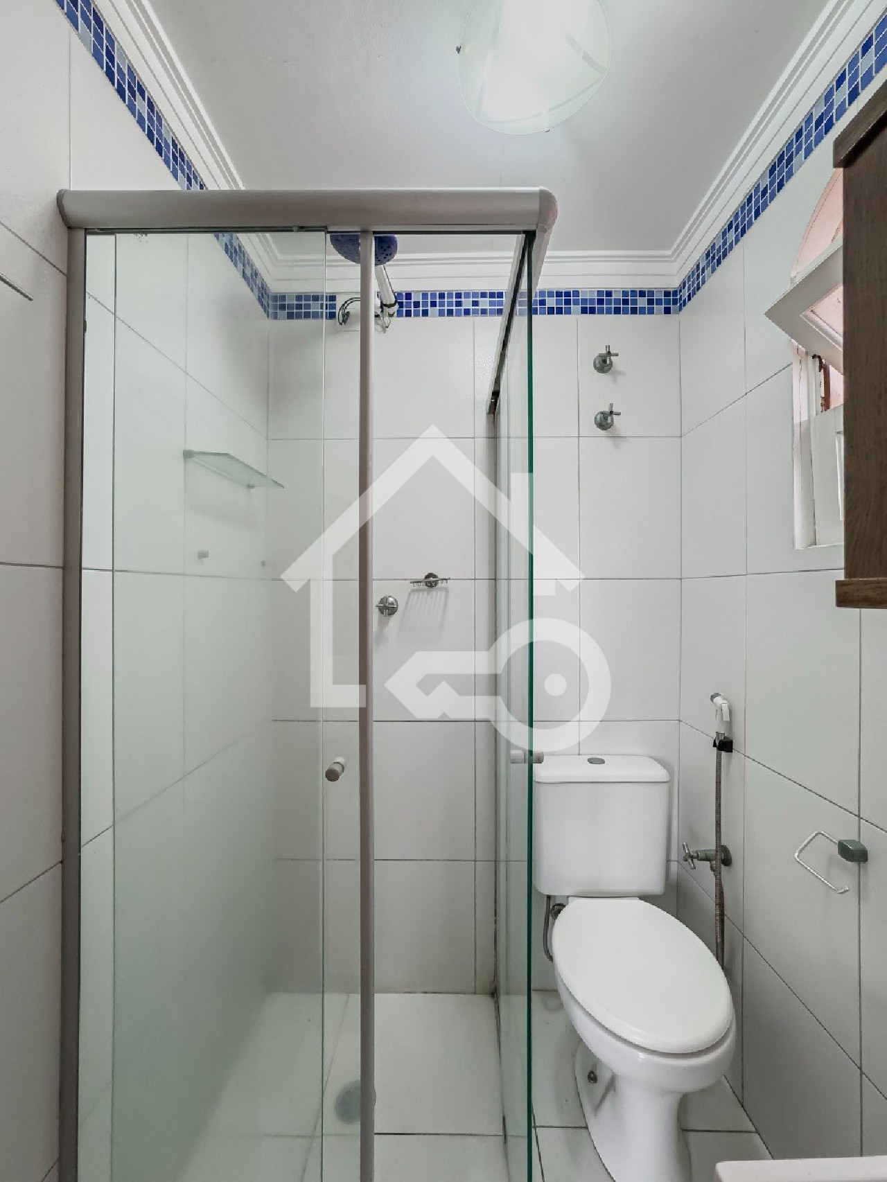Banheiro com box em vidro.