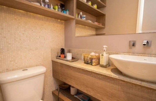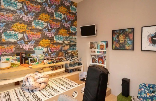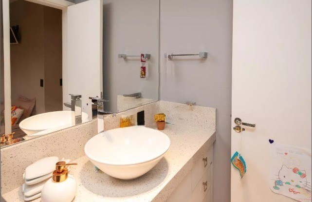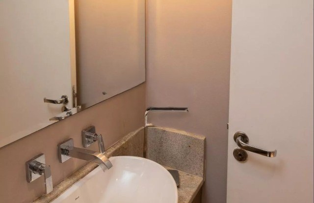 O imóvel possui 3 quartos, sendo 3 suítes, 5 banheiros e 3 vagas de garagem.