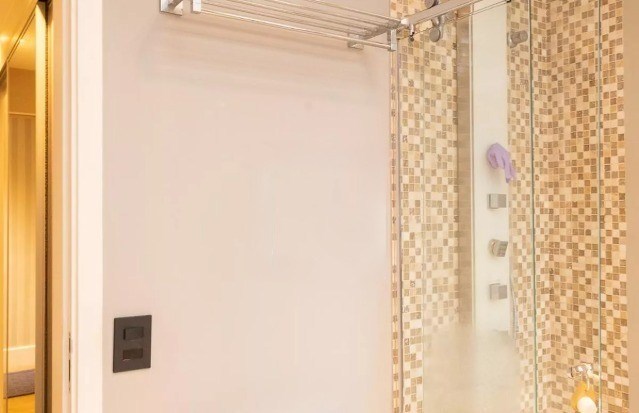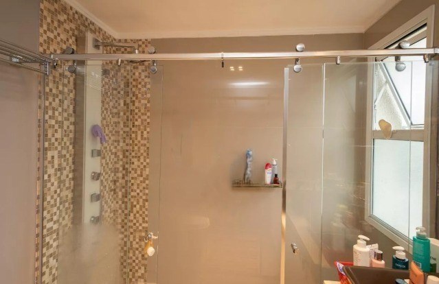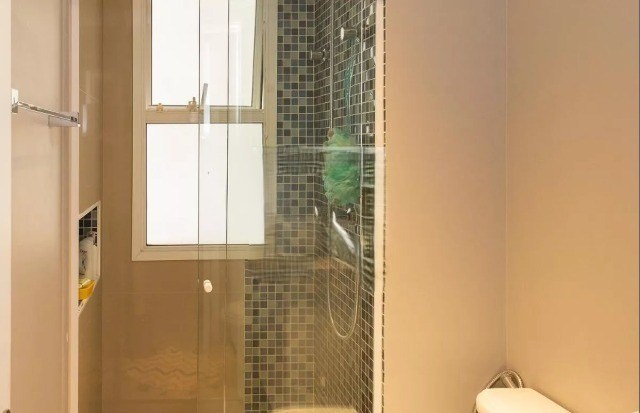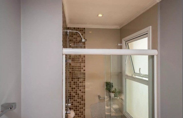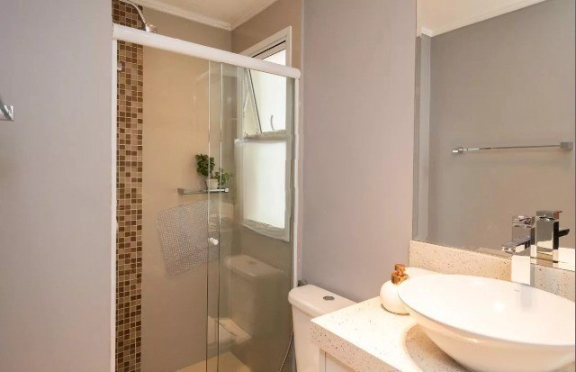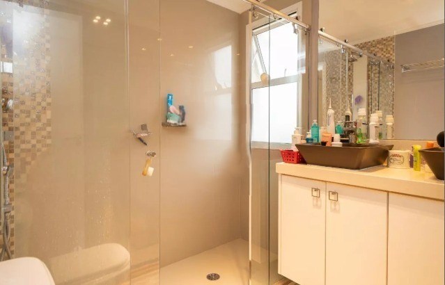 Banheiros com box em vidro.