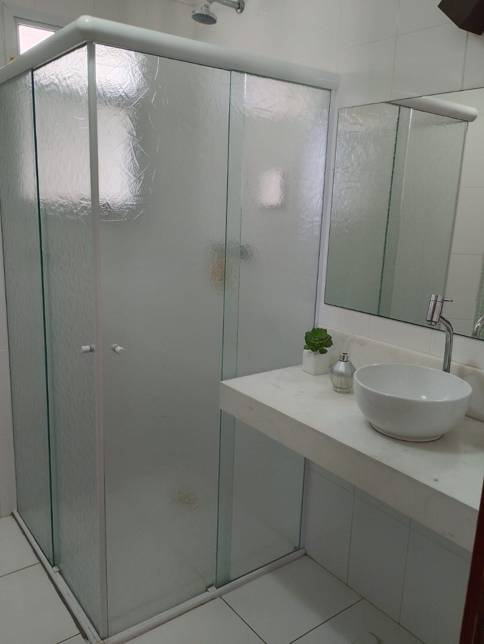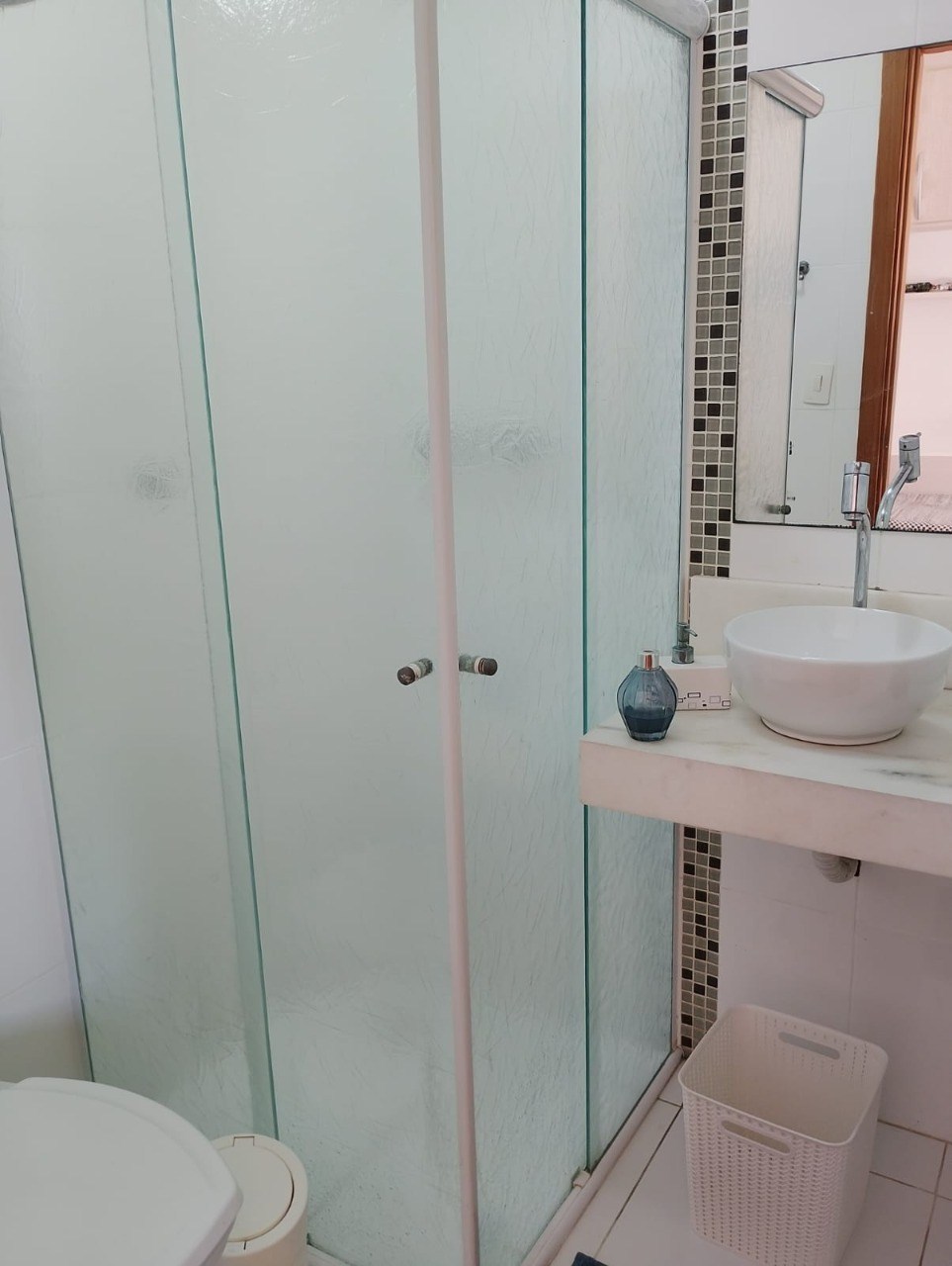 Banheiros com box em vidro.