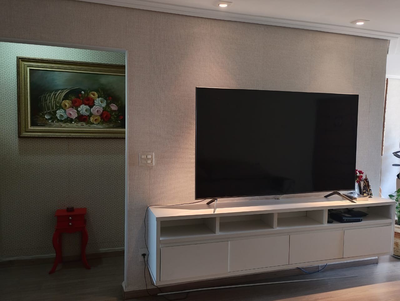 Sala ampla em dois ambientes.