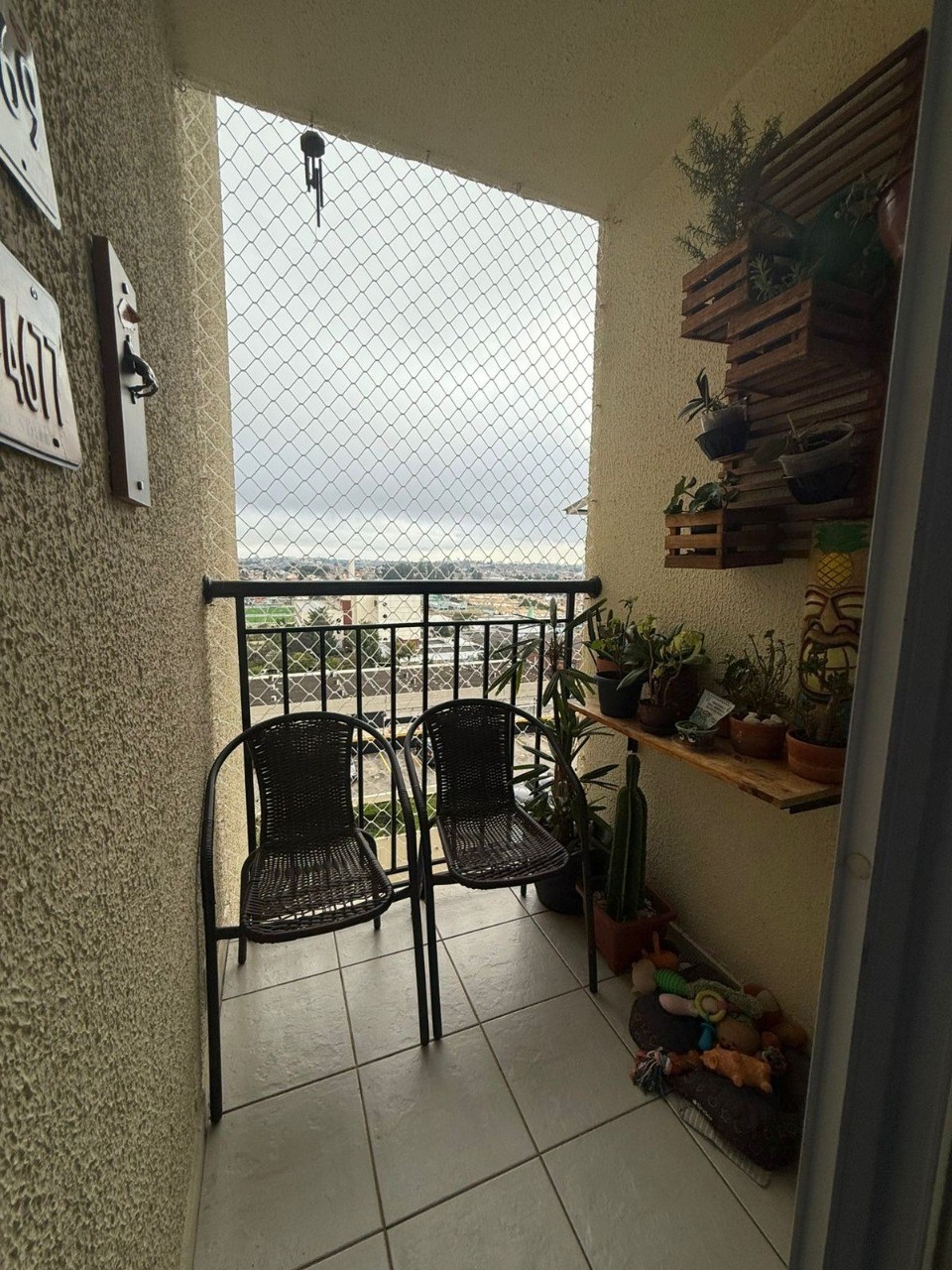 sacada com telas de proteção.