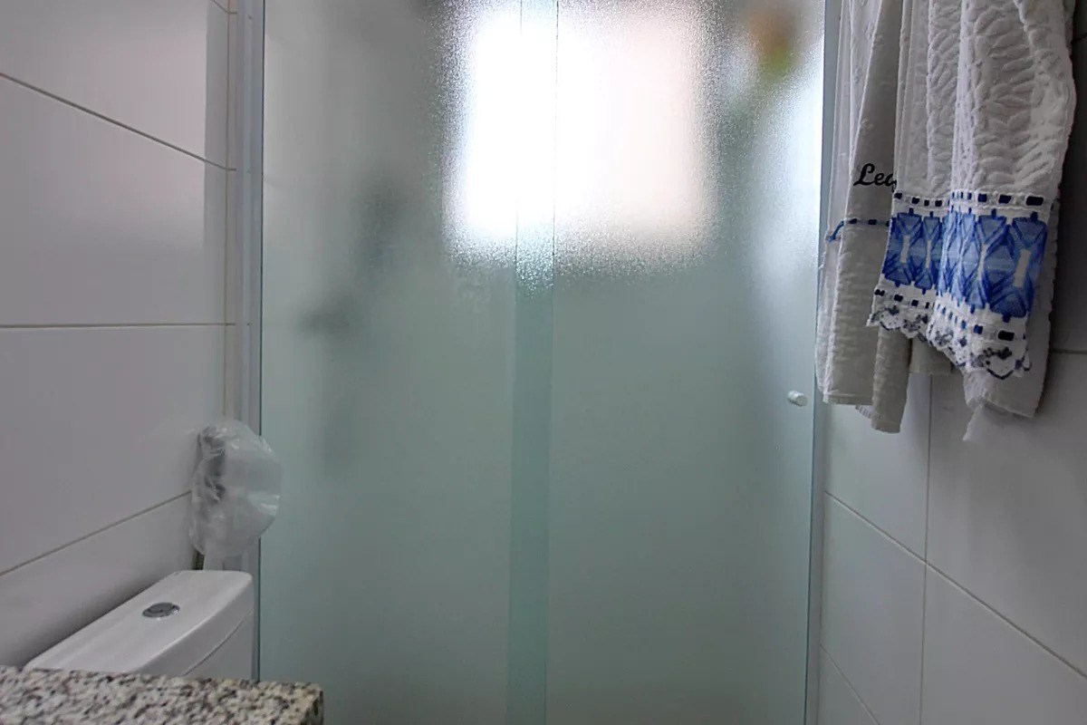 Banheiros com box em vidro.