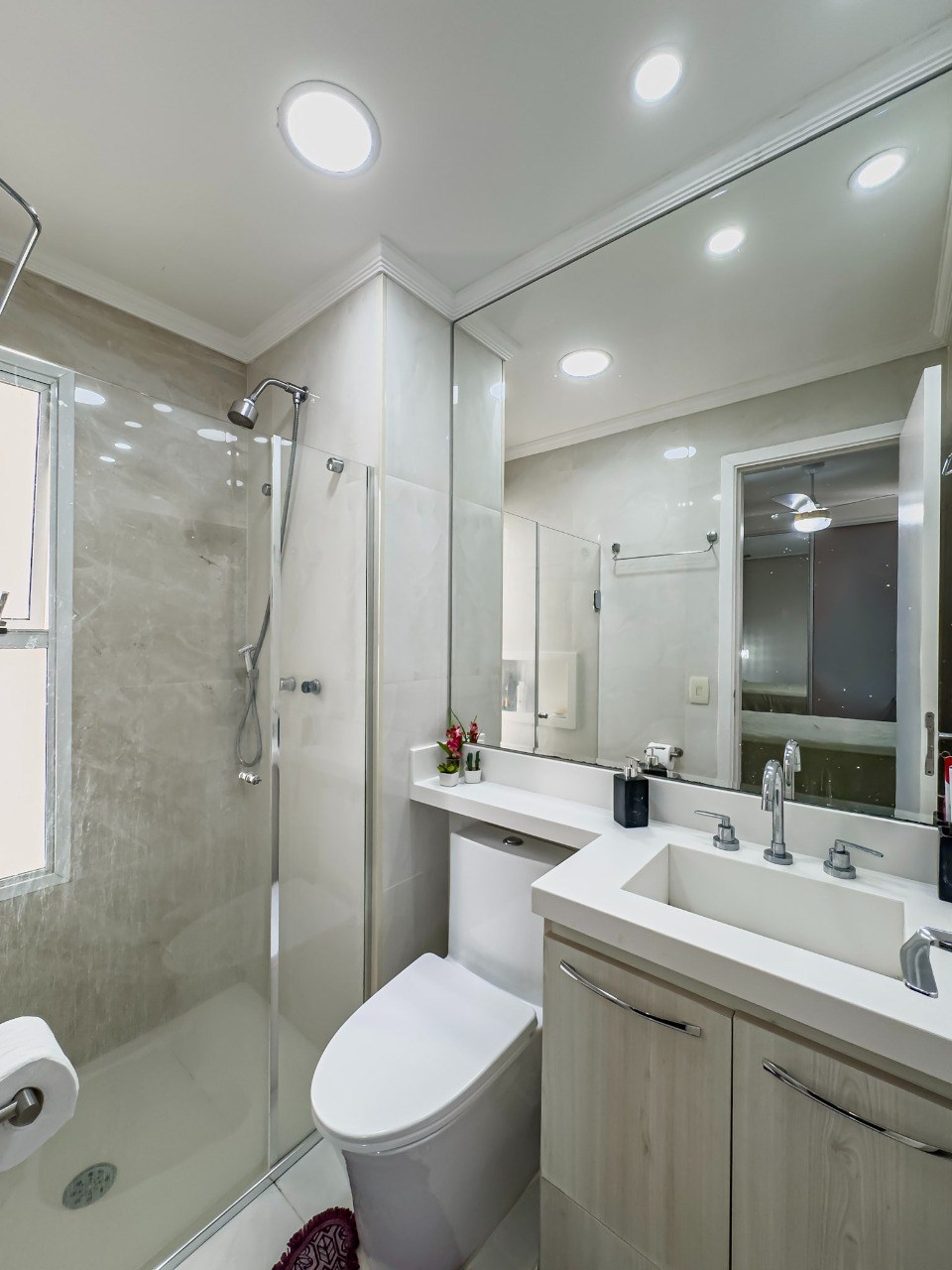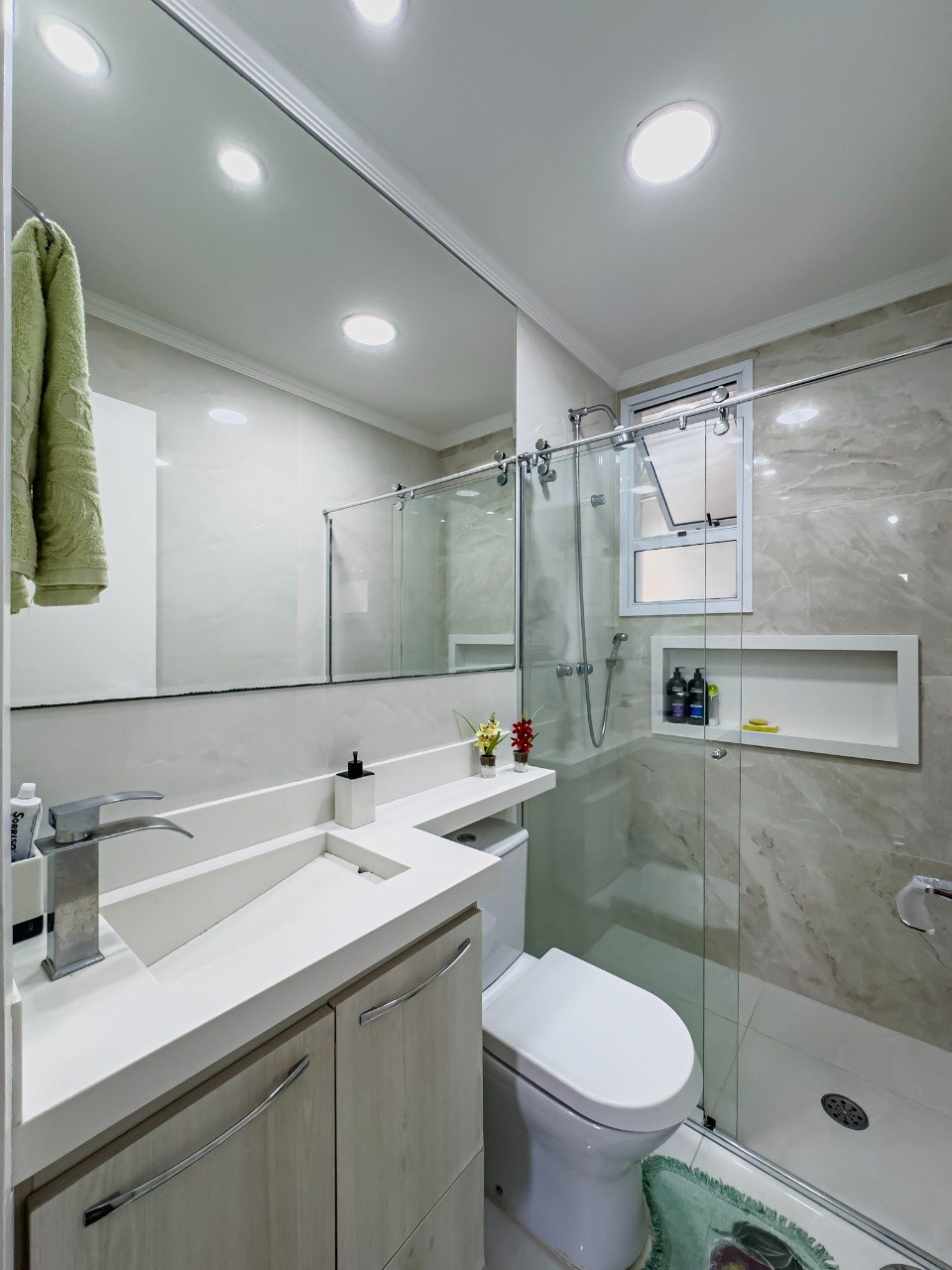 Banheiros com box em vidro.