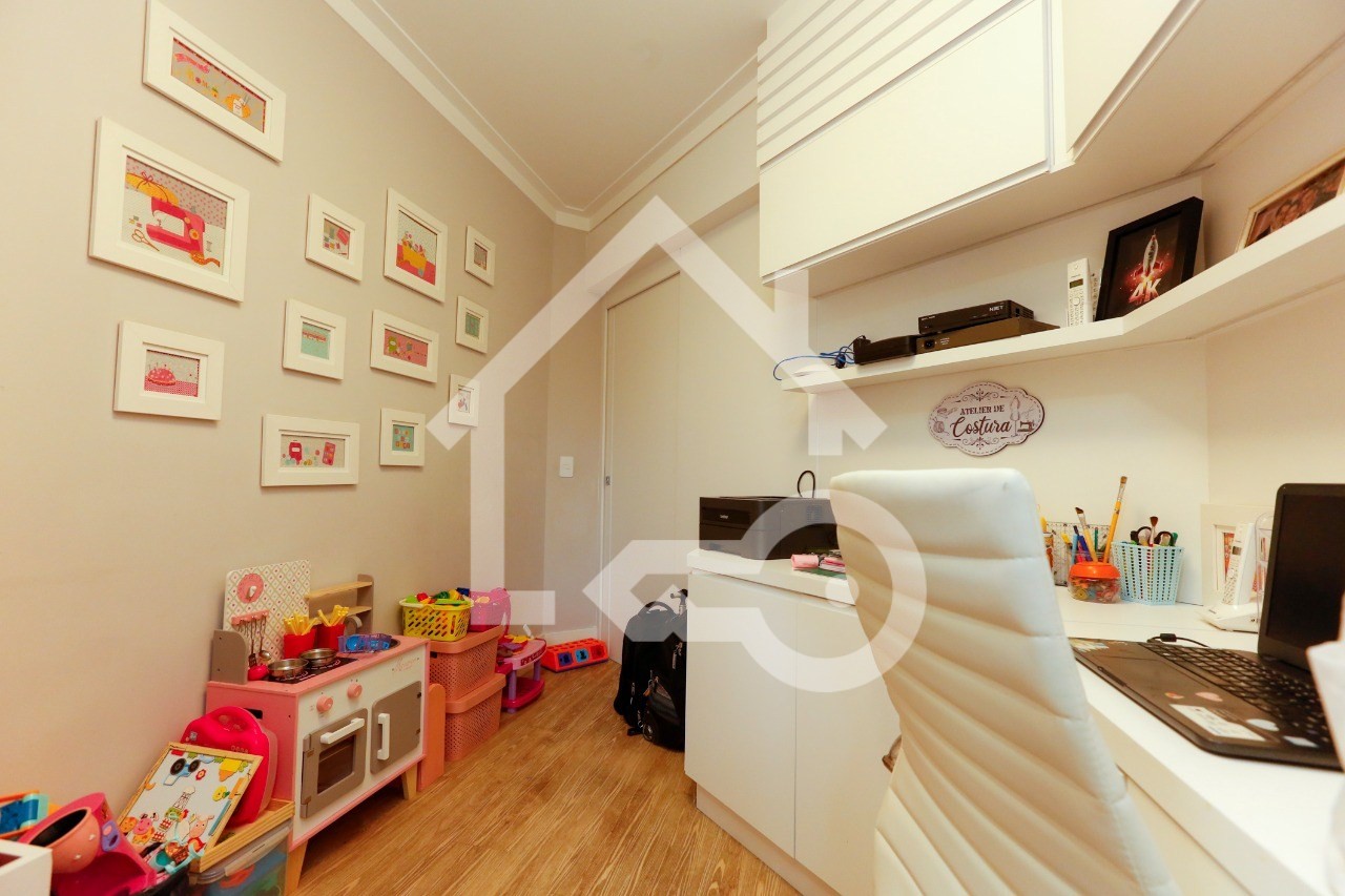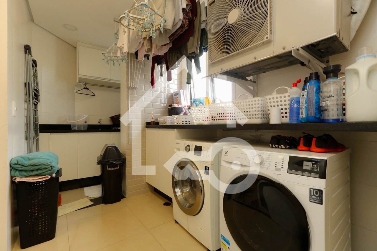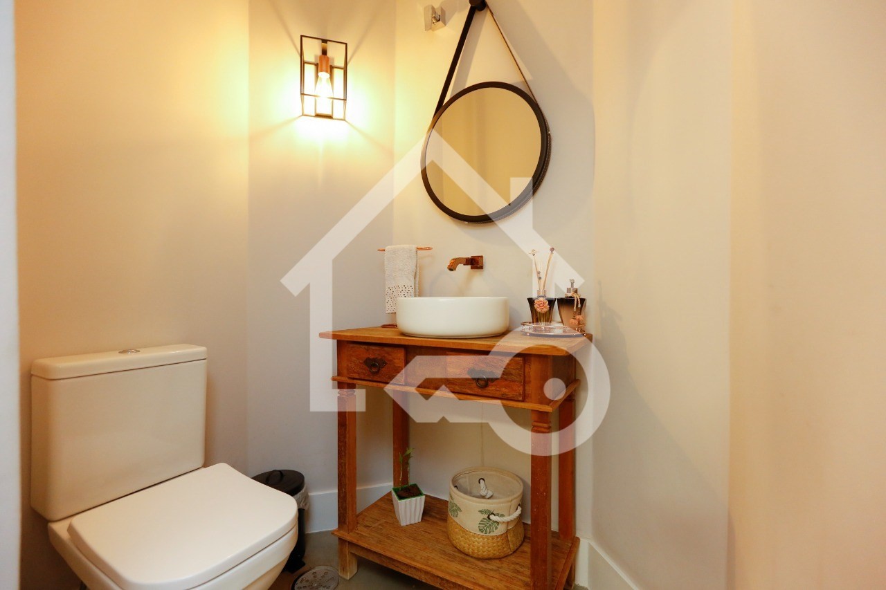 O imóvel possui 3 quartos, sendo 3 suítes, 5 banheiros e 2 vagas de garagem.