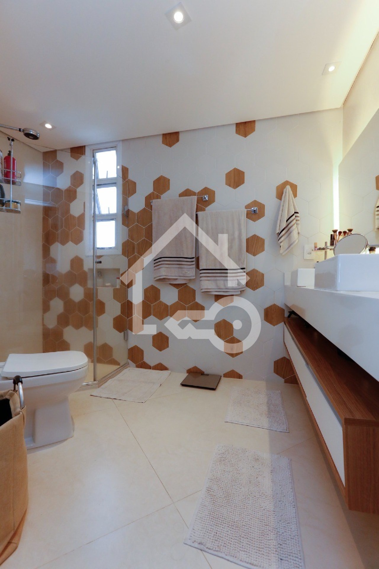 Banheiros com box em vidro.