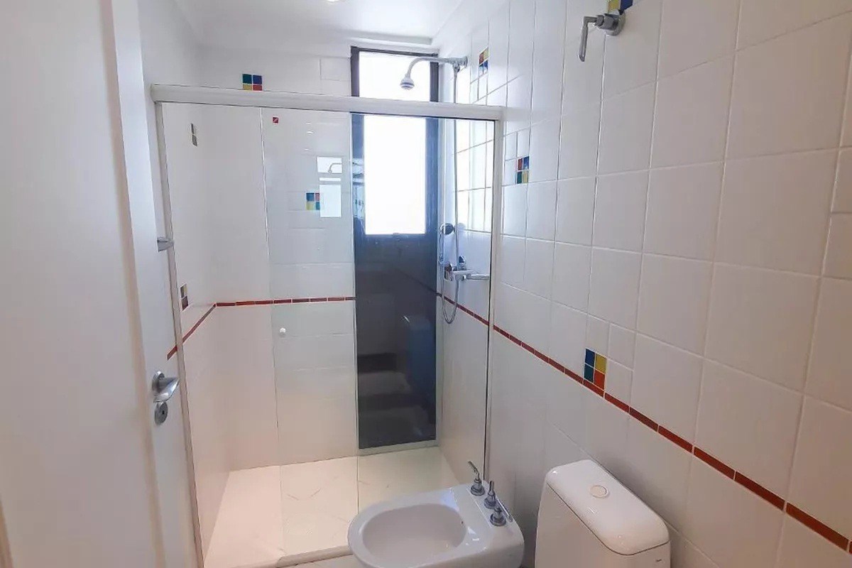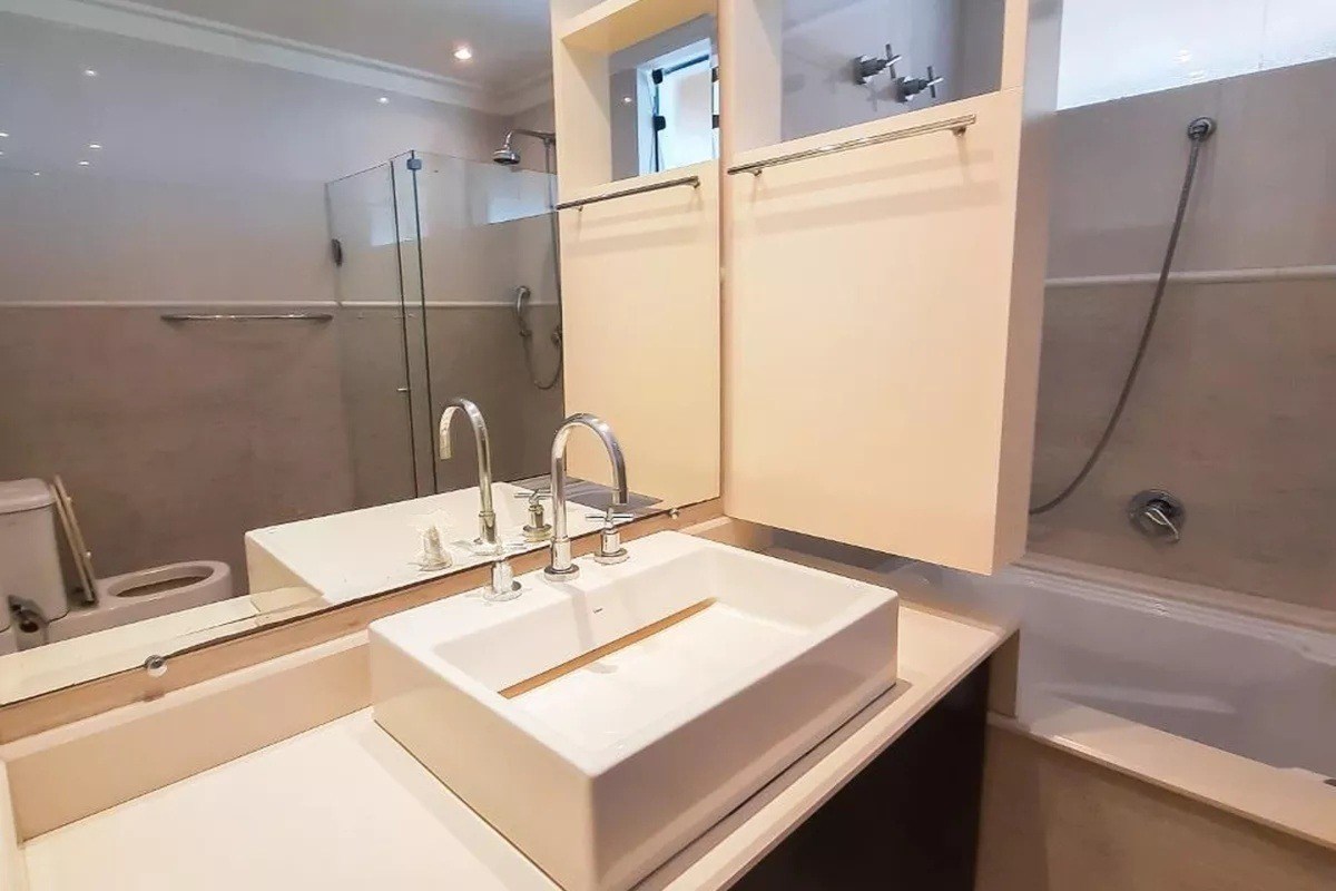 Banheiros com box em vidro.